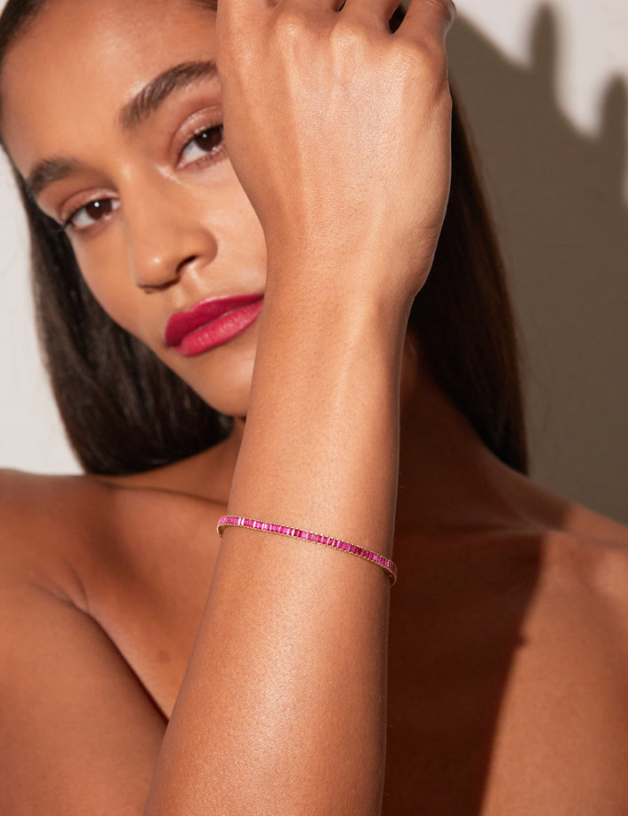 Lab Grown Red Ruby Baguette Tennis Bracelet